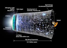 ,, Dokedy to bude trvať?´´Z pohľadu vedy si možno predstaviť vesmír ako ,, nafukovanie balóna´´.Pri počiatočnej explózii bola uvoľnená obrovská energia,ktorá sa prejavuje ako obrovská tlaková vlna.Pri veľkej termonukleárnej reakcii - pri obrovskej teplote a tlaku sa z plynných častíc vytvorili zhluky prvotnej tuhej hmoty.Z nej povznikali planéty, hviezdy a galaxie.Nakoľko vonkajším prejavom hmoty je gravitačné pole došlo k usporiadaniu vesmíru,ako ho poznáme dnes.